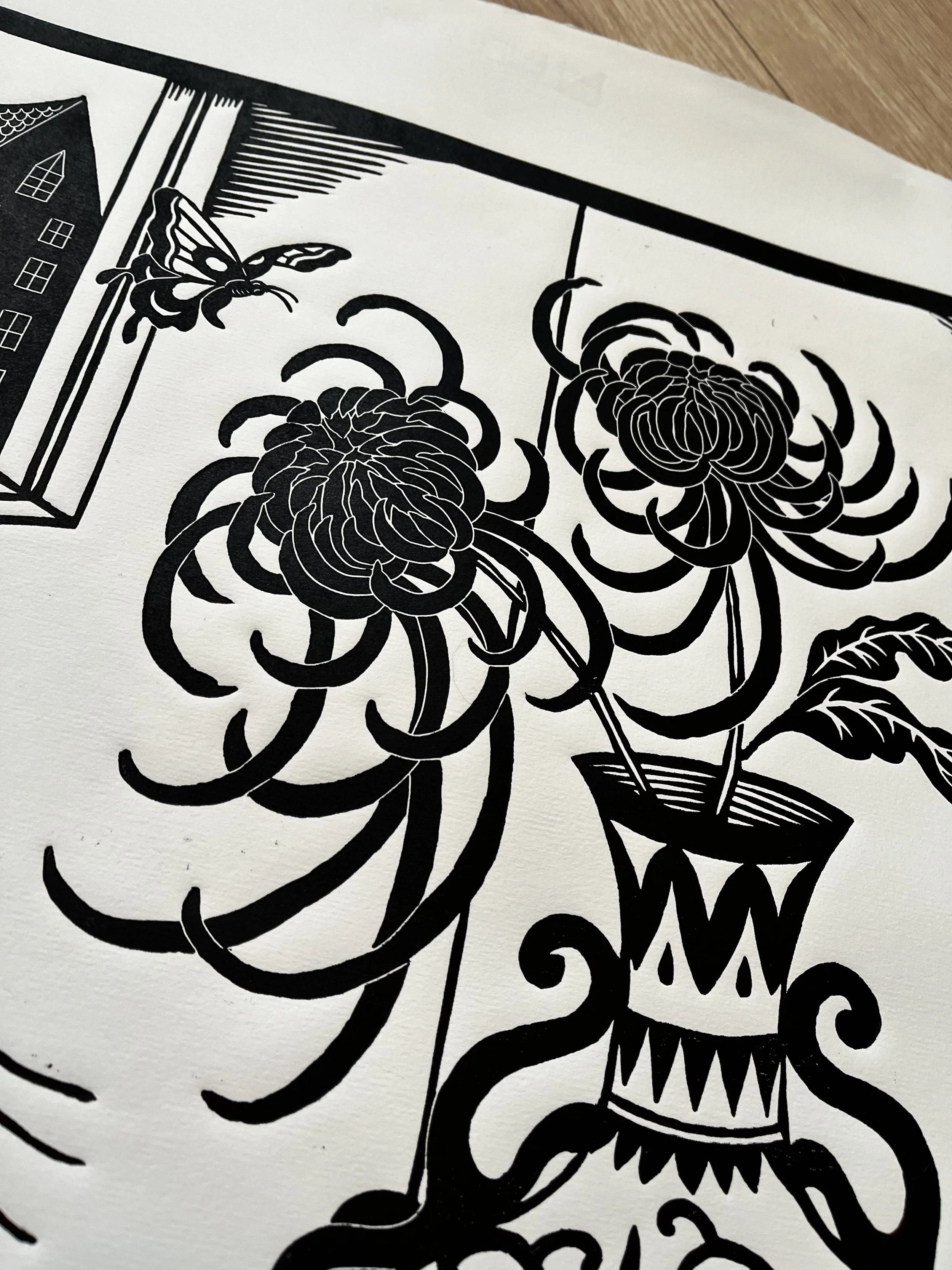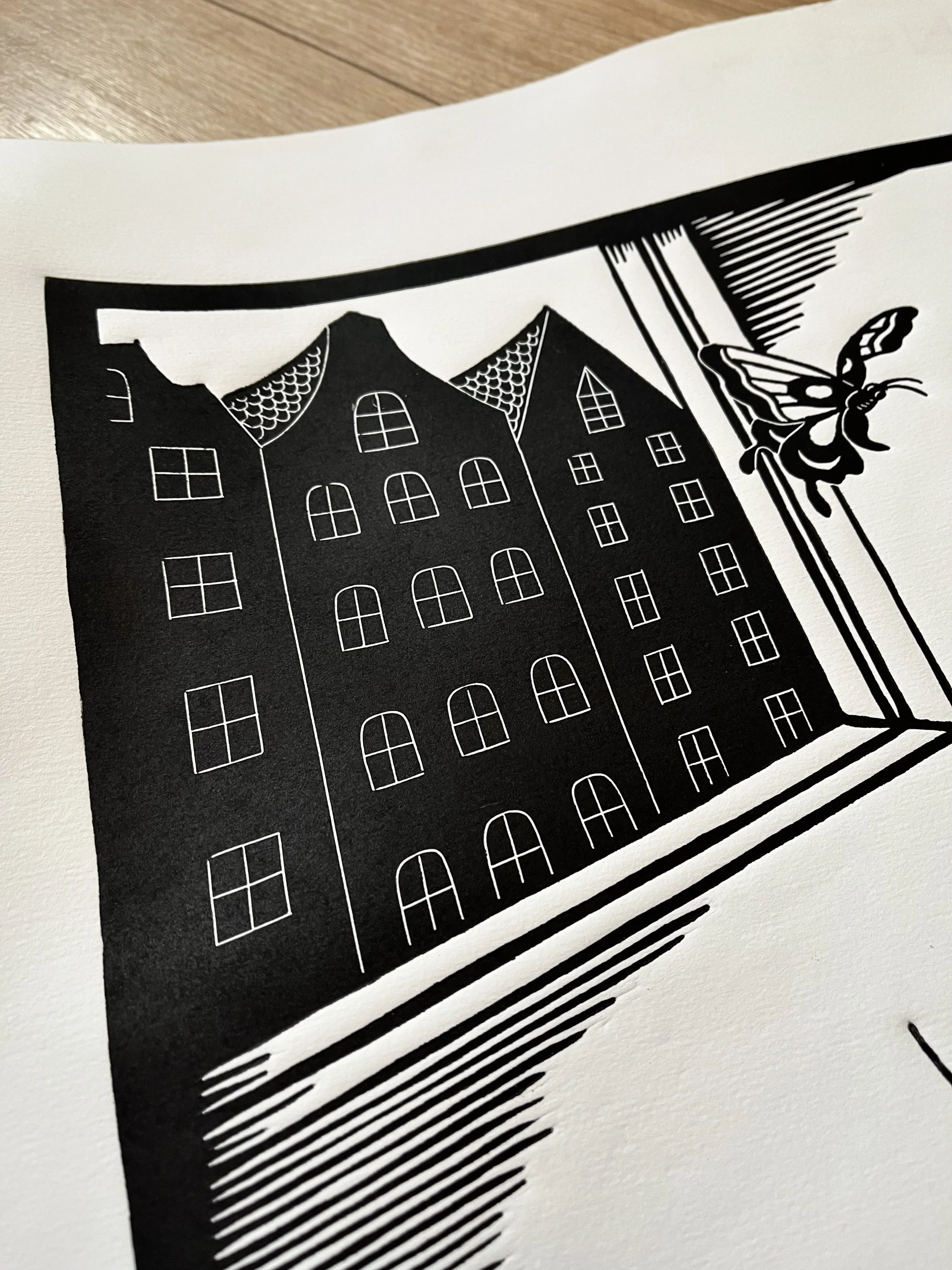 Commission for a store in Den Haag- Netherlands, only 10 copies of this linocut since the owner of the store purchased also the original lino block.